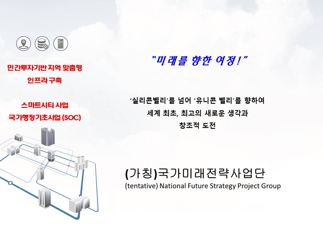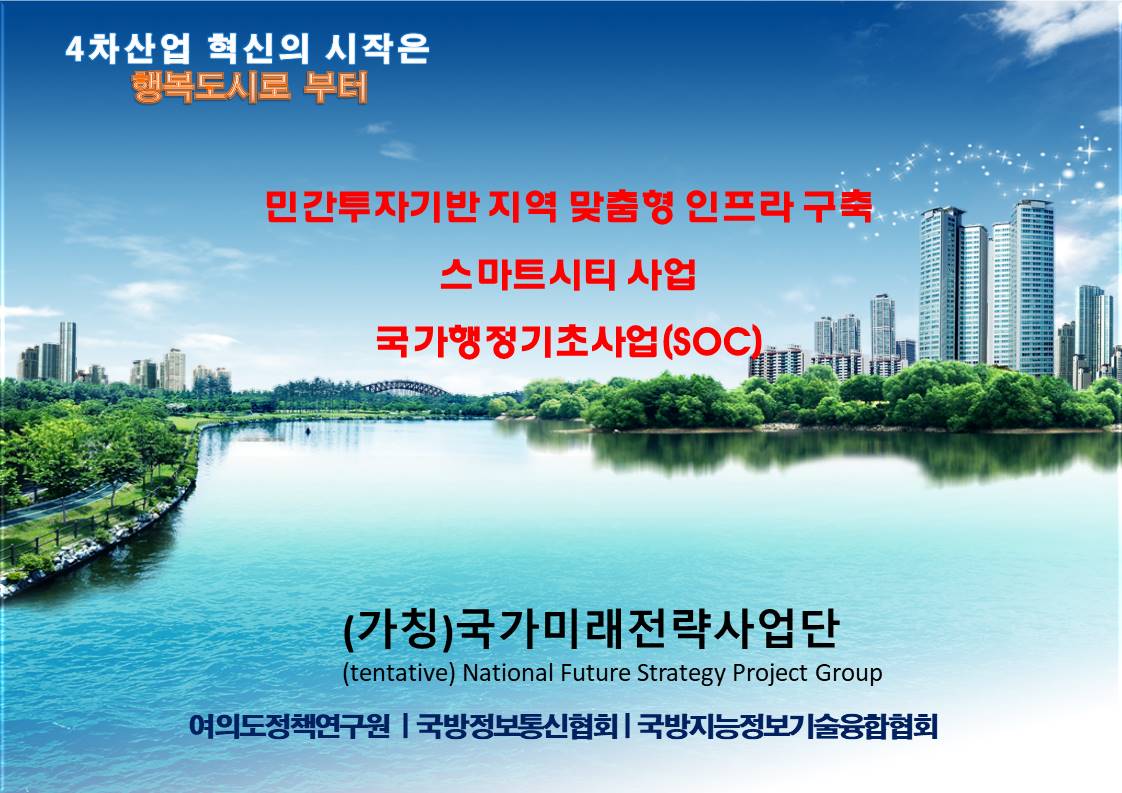 스마트시티-SOC사업(사회간접자본)을 위한 ‘국가미래전략사업단 발족식’이 지난 7월 9일 여의도 이룸센터에서 개최됐다.이 날 발족식에는 여의도정책연구원(원장 이궁), 프론티어M&A(회장 성보