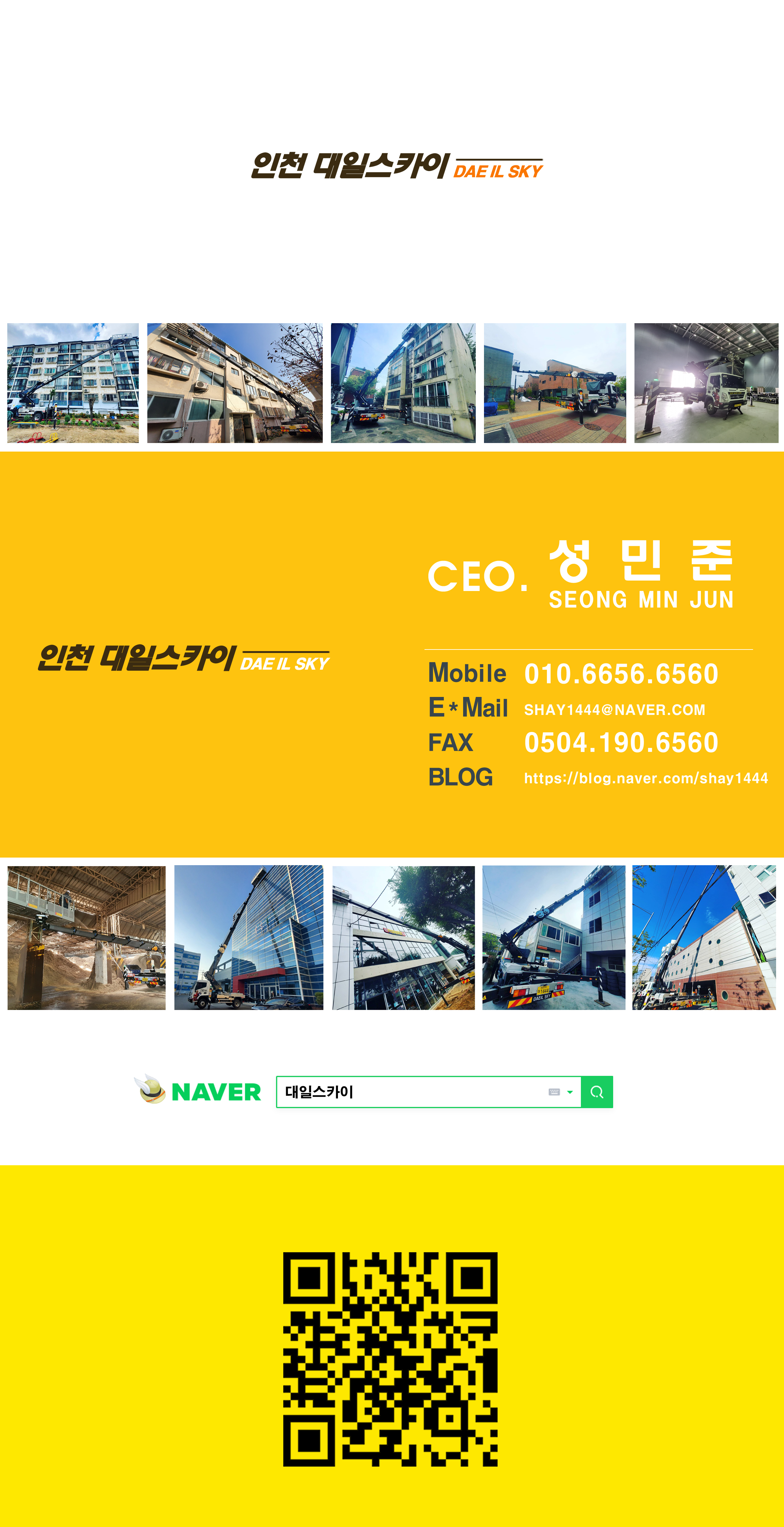 믿음과 신뢰를 최우선으로 하는 대일스카이입니다. 각종 최신 인증스카이장비 베테랑, 기사님들 항시대기중 ☎ 010-6656-6560